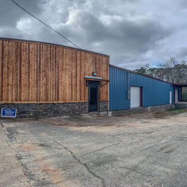 This metal building is located in downtown Thomasville and is a premier structure for a company that has been around for 88 years. The modern storefront glass is accented by a rustic wooden exterior.