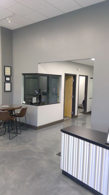 TTCI was excited to play a role in expanding this company's franchise with a new office space and body shop. A complete renovation, these offices now showcase frameless glass windows, corrugated metal interior cladding, and a smokey epoxy concrete floor. Attached is a fully operational body shop which makes this building convenient for employees and customers alike.
