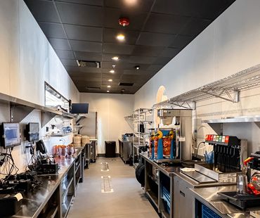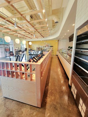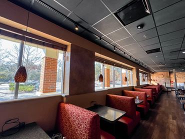 This 5,000 sq. ft. interior renovation sets the bar for restaurants! We had the privilege of working hand in hand with the owners of this project to make their dream become a reality! This space has a massive kitchen that features Eco-Grip flooring, 3 top of the line captiveaire hoods, 5 foot trough drain to easily maintain a clean kitchen, and 3 walk-in coolers/freezers. The Dining area features LVT flooring, custom made stone accents, granite countertops, custom millwork & booths, and an outdoor patio! They have a grand opening scheduled for January 22nd 2024!
