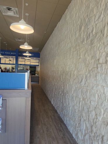 This build-out features a custom millwork package, wall tile, wallpaper, LVT flooring, a stone accent wall, a brick accent wall, rubber mat flooring (eco grip) in the kitchen for an easier clean, commercial air scrubbers in the dining area to enhance the cleanliness of the air amid the COVID-19 pandemic, and a new storefront system. The end product was a flawless design and the owner of the franchise has used various products and solutions offered by TTCI in his future restaurant’s designs.